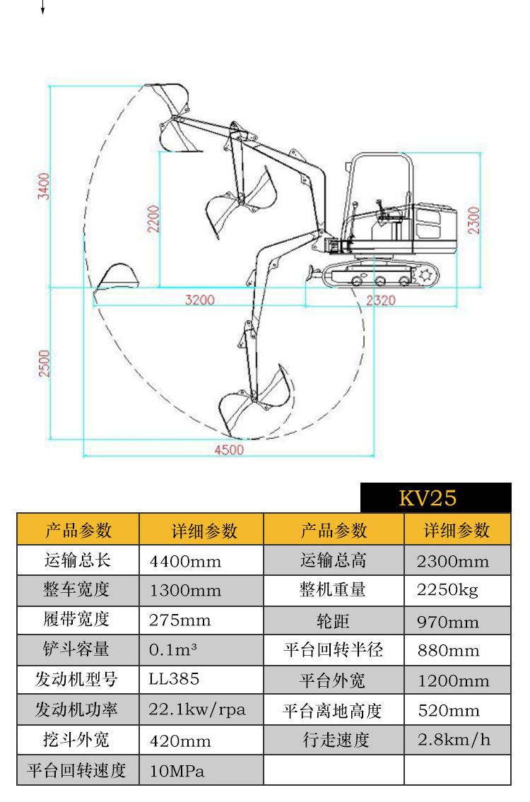 整機(jī)重量:2250kg履帶寬度:275mm發(fā)動(dòng)機(jī)功率:22.1kw