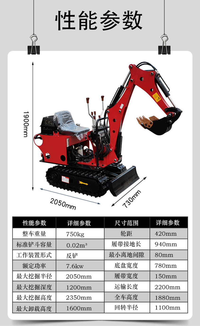 機身特點:1、可挖深1.4m;2、可進大棚、果園;3、回轉半徑小